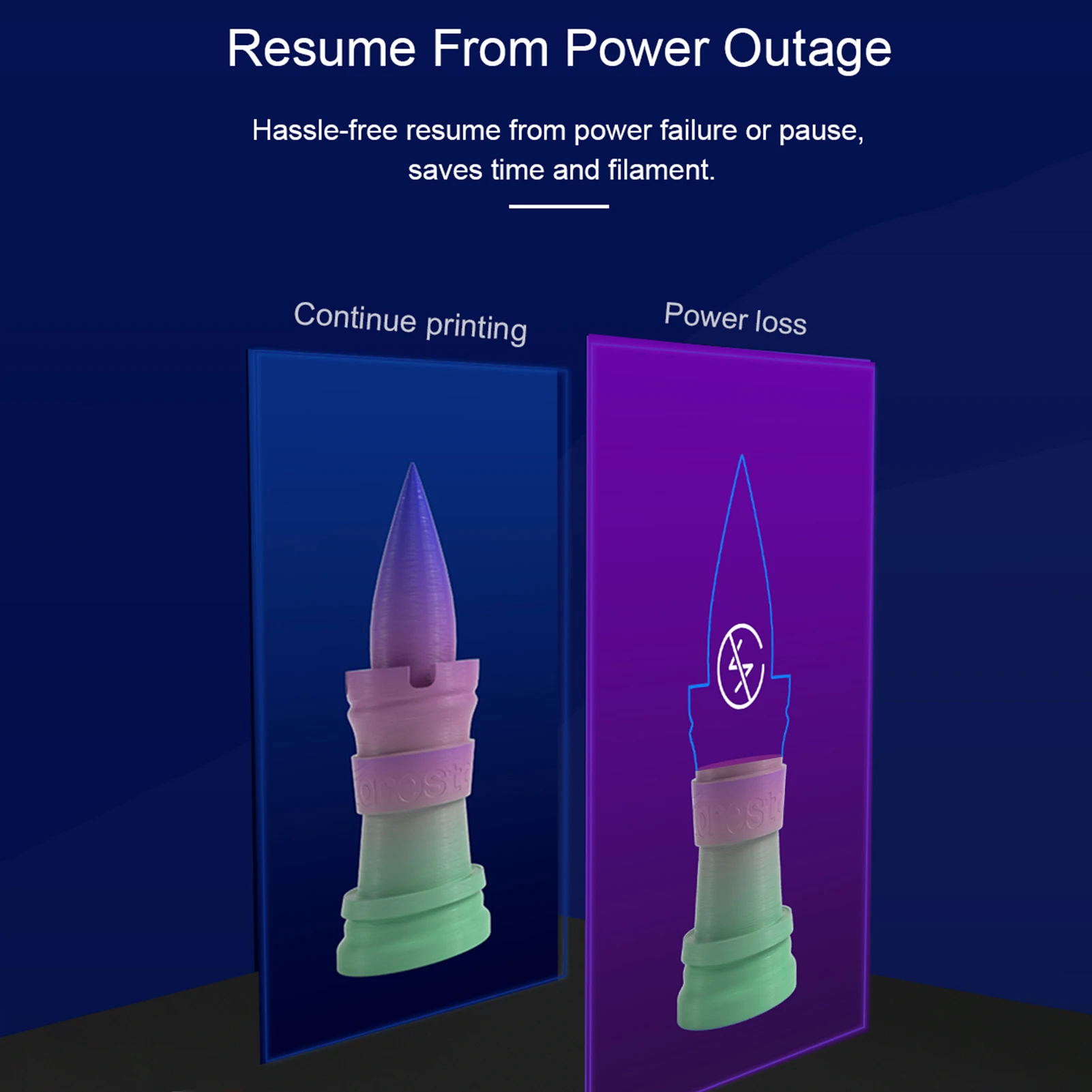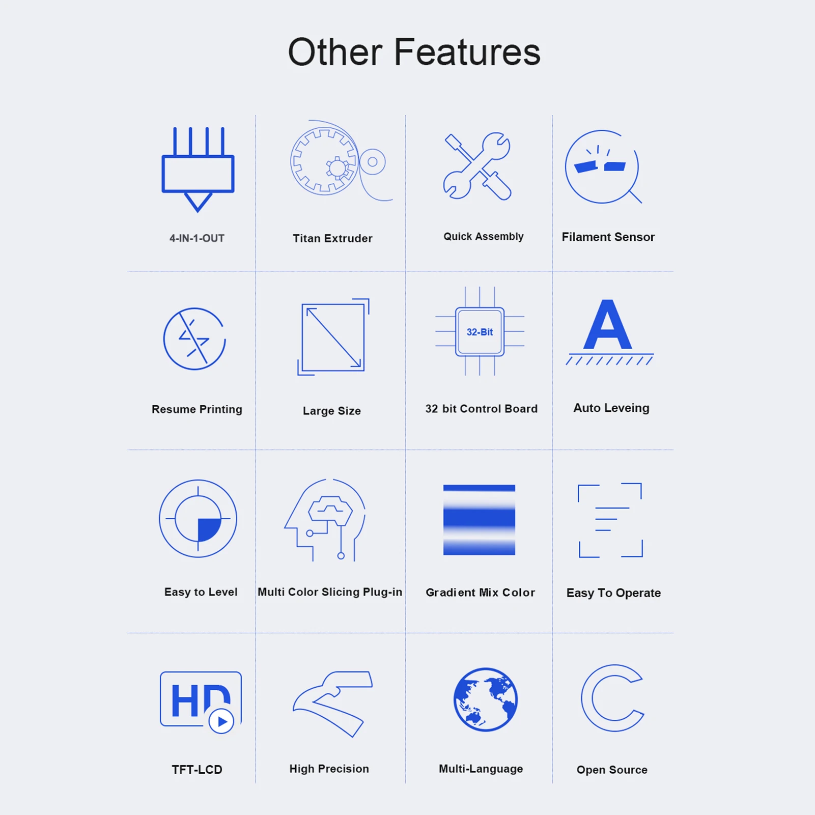 - Caractéristiques de sécurité telles que l’impression de reprise et le capteur de filament